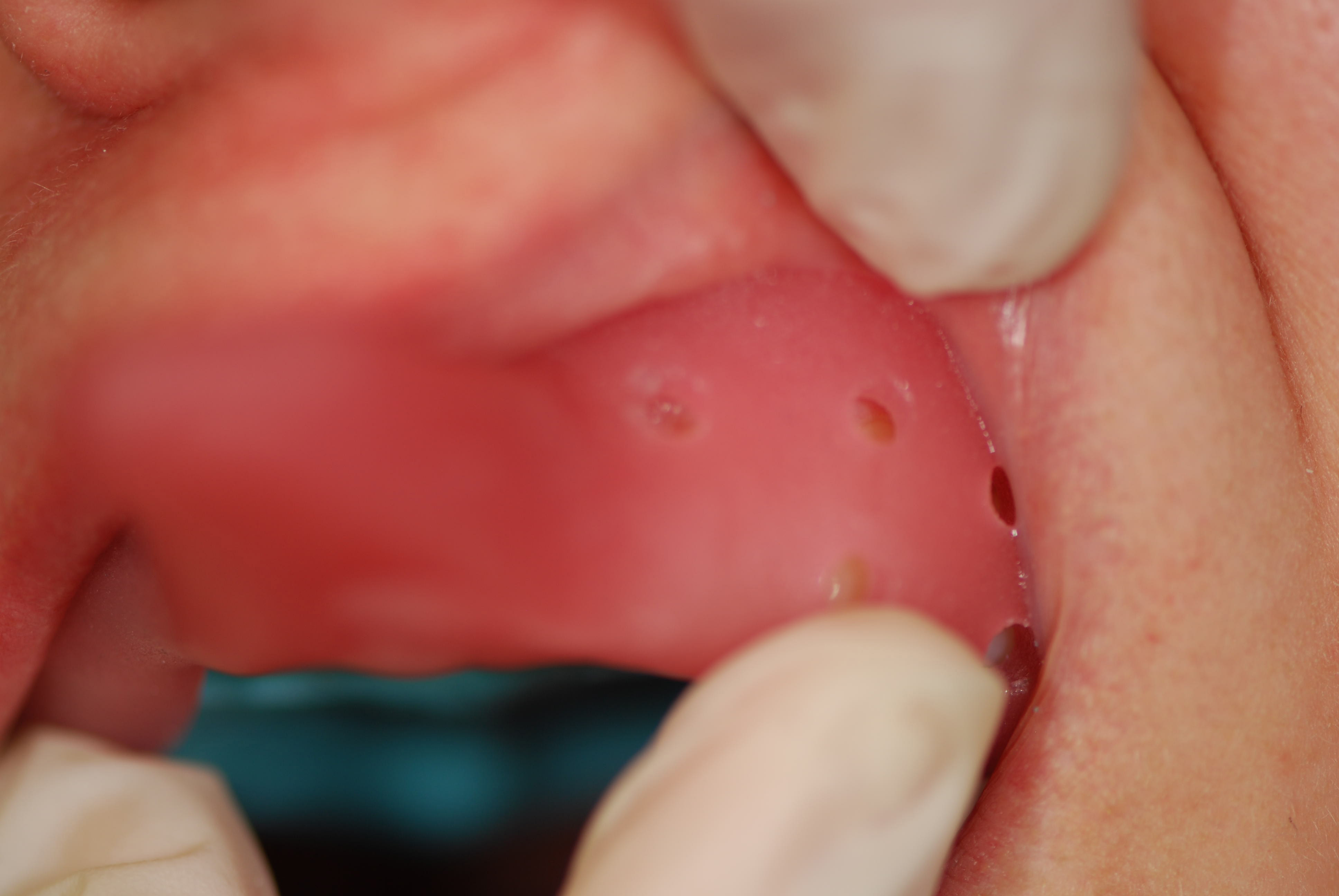 Miller classifications 3 and 4, if visible bothersome gingival recession with exposed root surfaces are present; if enlarged spaces between teeth exist; to correct esthetic irregularities; for problems with phonetics and/or saliva issues (wet speech); postoperative bone defects; bone loss after cancer treatment; or to temporarily cover insufficient crowns and bridges